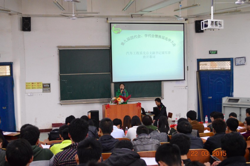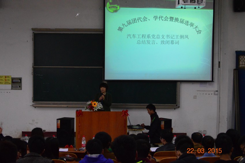3月22日下午14:30,汽车工程系“第九届团代会、学代会暨换届大会”在5209教室举行。汽车工程系党总支书记王俐凤、副书记梁军萍、大一全体辅导员及院学生会、兄弟系学生会干部参加了此次会议。