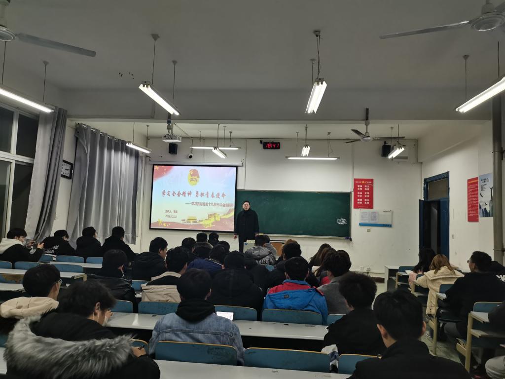 为深入学习贯彻党的十九届五中全会精神,切实把思想和行动统一到全会精神上来,引导广大师生奋力拼搏,为祖国发展贡献青春力量,12月22日晚,bv伟德国际1946分团委在5306教室,此次团课由分团委书记李路老师担任主讲,分团委学生会全体学生干部,2019级、2020级各班团支书参与主题团课。