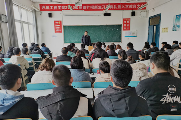 党总支副书记梁军萍致欢迎词,对同学们提出了期望,希望大家珍惜学习机会,尽快调整角色,明确学习目标,力争学有所成。院长张健对我国汽车产业发展趋势、学校和学院发展历程及总体情况做了细致介绍,鼓励同学们要热爱专业、勤学苦练、学有所长。汽车检测与维修技术专业负责人陈东、汽车营销与服务专业负责人张仲颖分别对本专业扩招人才培养方案作了详细介绍。最后,党总支书记张玲带领大家学习了疫情防控应知应会,让同学们全面了解新型冠状病毒肺炎知识,提高健康意识和自我防控能力。