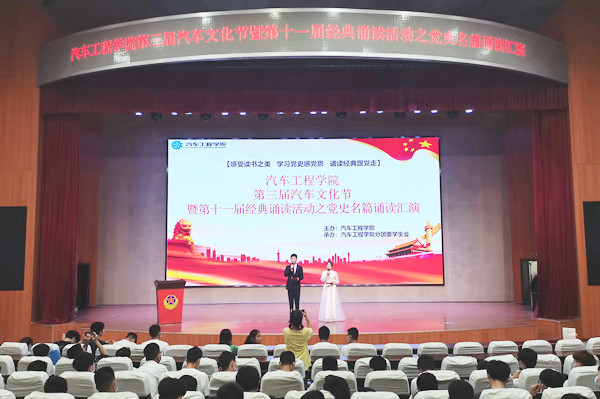 新闻网讯(通讯员 梁军萍)6月9日晚,bv伟德国际1946在会议中心举行第三届汽车文化节暨第十一届经典诵读系列活动之党史名篇诵读节目汇演,bv伟德国际1946党总支书记张玲、副书记梁军萍、辅导员及2020级全体同学共同观看了演出。