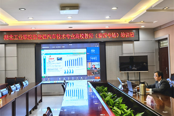 开班仪式后,教务处副处长赵艳杰以bv伟德为例,讲解了《新能源汽车技术专业的建设和管理》。赵艳杰从石油危机、碳达峰碳中和、清洁能源所引发的汽车发展趋势和学校特色、产业背景、人才需求所要求的高职院校需要为地方经济社会发展服务两个方面,阐述了新能源汽车技术专业建设背景,并重点介绍了教学标准制定、课程体系构建、人才培养方案制定、专业条件建设、校企合作等专业建设方法和相关g管理过程。