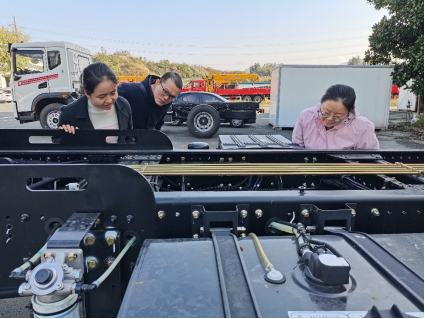 在湖北人杰特种汽车科技有限公司,大家听取了企业技术负责人刘勇关于企业生产经营、新产品研发设计、生产技术难题等情况介绍,并现场参观了生产车间。对于企业提出的专用车产品轻量化设计、新材料的应用和专用车辆车架受力分析,教师团队给予了现场指导,并与公司技术人员进行了深入交流和技术对接,表示将根据企业的需求后续跟进服务,助力企业创新发展和技术进步。交流活动结束时,企业负责人深表满意和感谢,也表达了在目前商用车经济形势整体困难和不确定性背景下,开展此次活动的重要意义,并就后续校企合作开发新产品、员工技术培训、毕业生岗位用工需求等表达合作意愿。