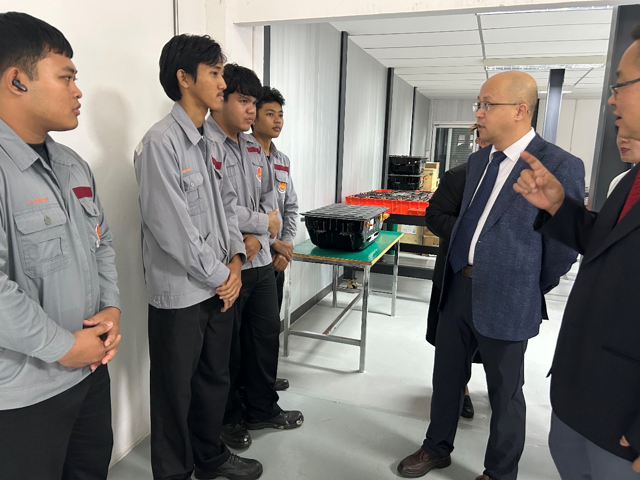 8月20日至23日,代表团赴泰国罗勇参观中资企业比亚迪汽车,详细了解企业运营及人才需求。在罗勇技术学院,双方共同为“中泰汽车产业学院”揭牌,并就人才培养模式、中方教师赴泰教学与培训等合作事宜举行会谈。代表团还参观了该校新能源汽车实训室,全面了解相关专业的学生规模与学习状况。随后,与泰国东部职业教育委员会举行工作会议,就bv伟德国际合作项目进行沟通交流,并探讨以合作办学点为平台开展新能源汽车领域的师资培训。此外,代表团拜访了泰国北京商会,交流商会发展近况,共同探讨在“一带一路”框架下,借助曼谷在东盟地区的区位优势,推动职业教育与东盟市场人才需求的有效对接。