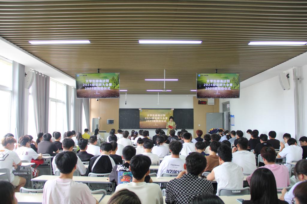 会议伊始,分团委副书记何晓凡作为2024级修身计划优秀学生代表上台发言。她分享了参与修身计划的成长感悟,强调了修身之路贵在坚持与笃行,为2025级新生树立了榜样。随后,2025级新生代表、中德班班长赵杰表达了新生们对参加修身计划的决心与期待,承诺将以饱满的热情和坚定的信念投入到修身计划中,书写属于自己的精彩篇章。