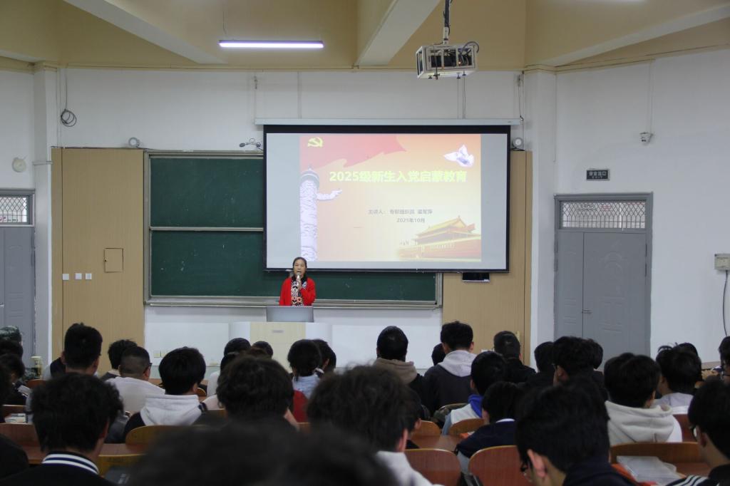 专职组织员梁军萍以“知史爱党、初心如磐”为主题,系统梳理了中国共产党波澜壮阔的光辉历程与祖国取得的辉煌发展成就,阐述了党的性质、宗旨与历史使命。她围绕“为什么入党”、“怎样才能入党”、“入党后要怎么做”等问题,结合入党条件与党员义务,引导新生端正入党初心,构建对党的全面、理性认知。学生党支部书记张琦聚焦“知行合一,行动入党”的实践要求,重点讲解了树立正确入党动机、明晰党员发展流程、规范撰写入党申请书等关键环节。她特别强调了共青团员与共产党员不能信仰宗教的政治纪律,引导新生树立科学的民族观与宗教观。结合支部优秀毕业生党员的先进事迹,张琦以榜样的力量激发新生的进取心,并在互动问答环节中,针对同学们普遍关心的问题进行了细致解答,鼓励大家从思想和行动上主动向党组织靠拢。