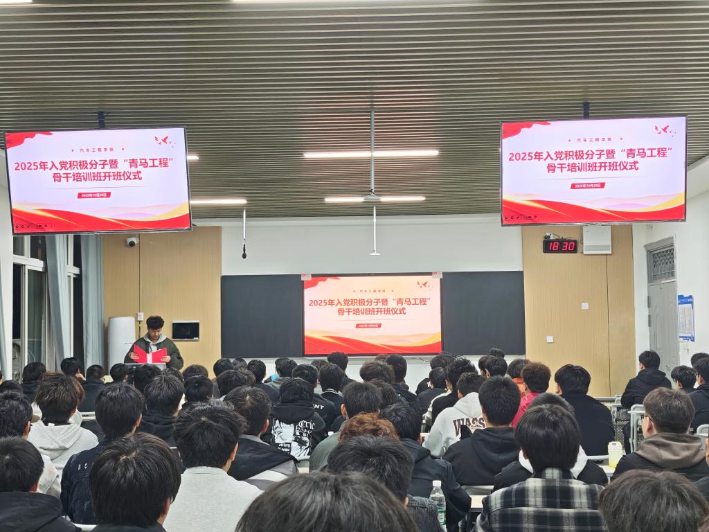 (通讯员 张领)为落实立德树人根本任务,加强大学生思想政治引领,10月29日晚,bv伟德国际1946在5504教室举行“青马工程”暨入党积极分子培训班开班仪式。学院党总支书记李霞、副书记李路、专职组织员梁军萍、学生党支部书记张琦、分团委书记曲杉出席,110名入党积极分子、入团积极分子及2025级团学骨干参加。