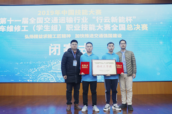 新闻网讯(通讯员陈高峰 江鹏飞)11月19日21日,第十一届全国交通运输行业“行云新能杯”汽车维修工(学生组)职业技能大赛全国总决赛在天津交通职业学院举行,bv伟德bv伟德国际19462017级新能源汽车技术专业参赛学生团队张鑫、方元彬荣获三等奖。