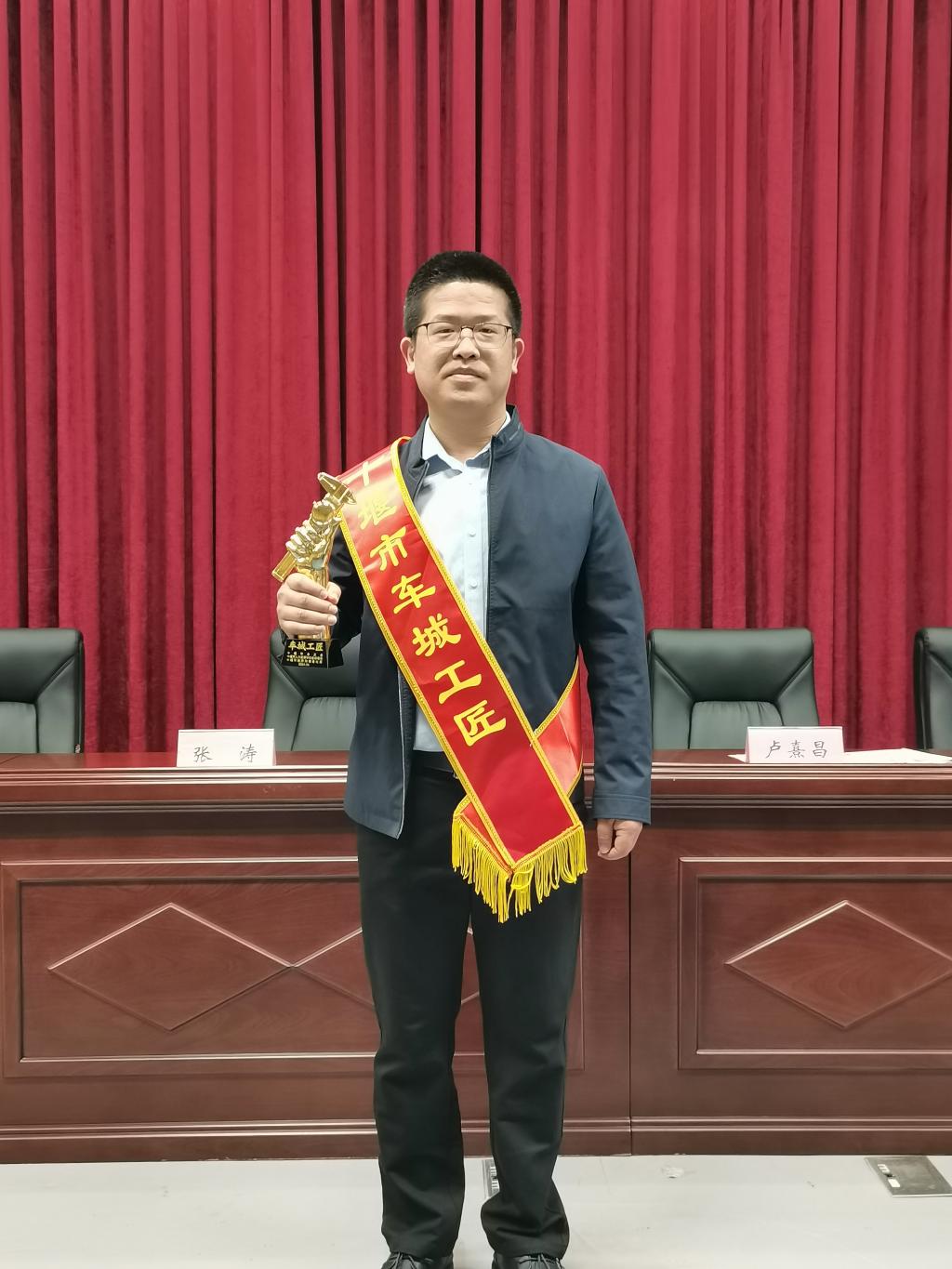 在本次大会上,bv伟德bv伟德国际1946优秀教师马伟荣获十堰市第六届“车城工匠”(五一劳动奖)称号,并上台接受颁奖。